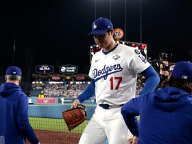 The Dodgers’ Pages led off the fifth with a home run to even the score. Vladimir Guerrero, who to that point was hitting just .105 in the series, hit a one-out double in the sixth and scored on Varsho’s two-run double as the Jays moved back in front. The Dodgers retied the game on Will Smith’s leadoff homer in the eighth as the tension continued to mount.